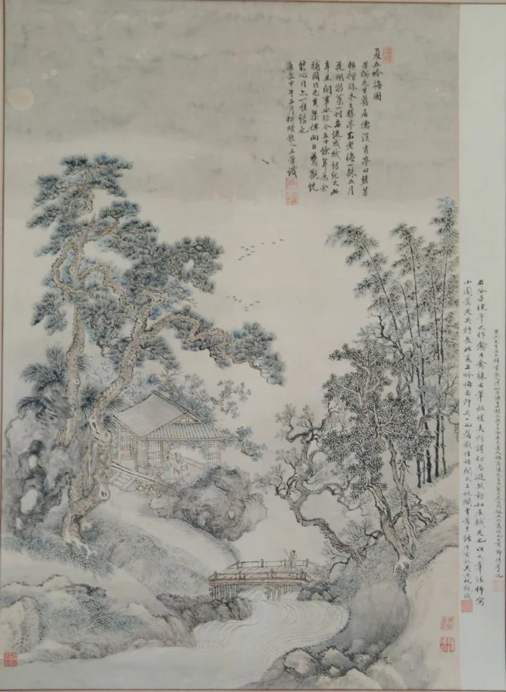 此图画成时王翚已是83裂常国味限岁高龄,然而画面丝毫看不出有衰老的迹象,线条细若游丝,劲如屈铁,笔力老练纯熟,画风细润明快,融合了众家笔法之长。构图布景显示出画家胸有成竹,景物的配置自然写实,气度不凡。吴湖帆赞此图:“以大章法布写小远景。”