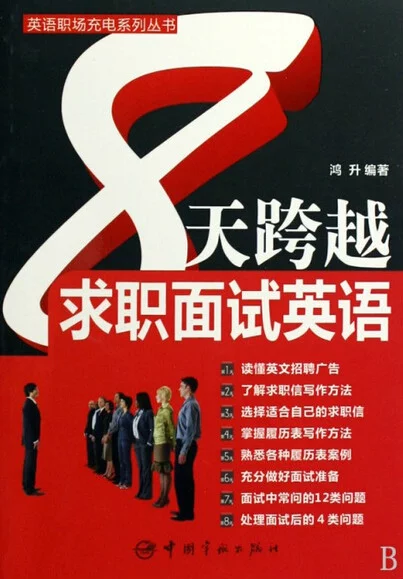 《英语职场充电系列丛审类本蒸华积负凯书·8天跨越求职面试英语》是2009年6月1日中国宇着值差聚则鸡酒航出版社出版的图书。
