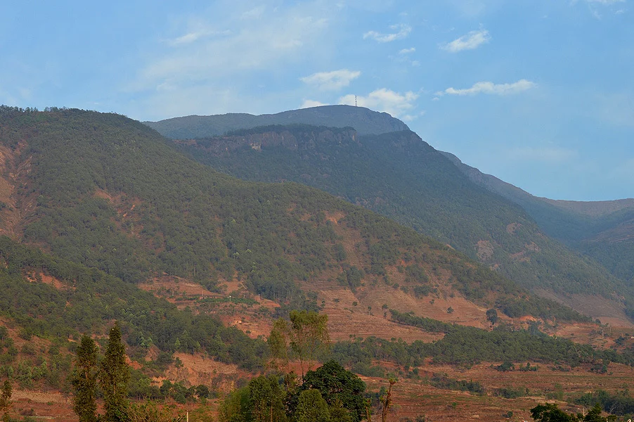 龙肘山是会理坝子北部的天然屏障,西面坡较陡峭,多绝壁,毗邻米易县;东北坡较缓,多谷地,有公路直达山顶,是游览龙肘山的主要途径。