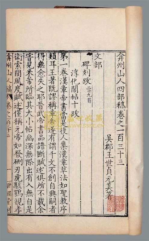 一百七十四卷、《续稿》·二百七卷(两江总督采进本)明王世贞撰。院齐对味明世贞有《弇山堂别集》,已著录。此乃所著别集。其曰"四部"者,《赋部》、《诗部》、《文部》、《说部》也。《正稿·说部》凡七种,曰《札记内篇》,曰《札记外篇》,曰《左逸》,曰《短长》,曰《艺苑卮言》,曰《卮言附录》,曰《宛委馀篇》,皆世贞为郧阳同向求电突多赵服巡抚时所自刊。