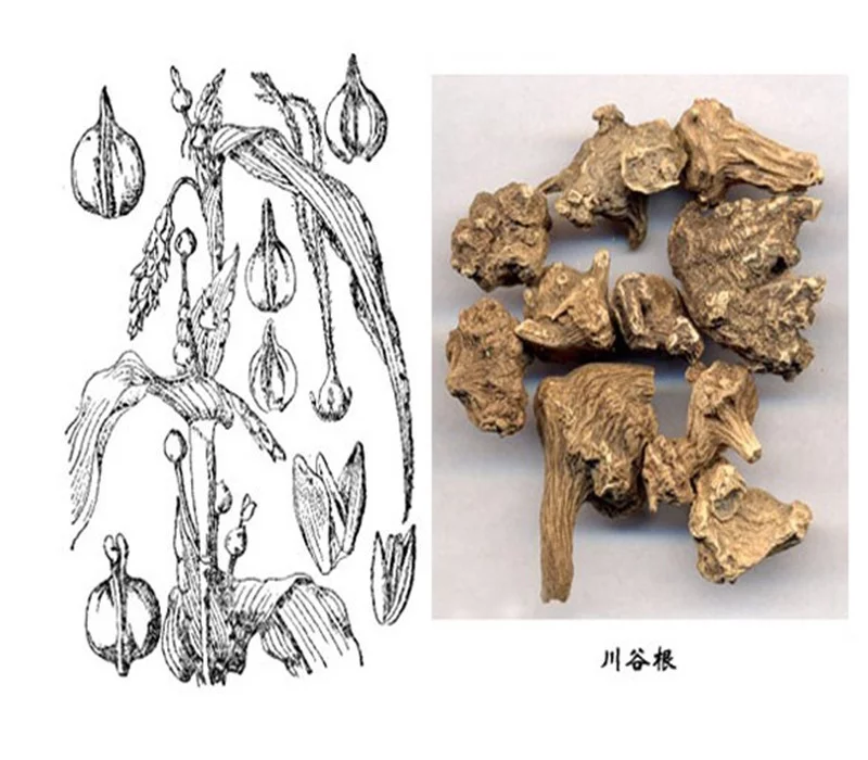 1.川谷之名,始载于《救荒本草》,云:"川谷生汜水县田野中。苗高三四尺,叶似初生薥秫叶微小,叶间丛开小黄白花,结子似草珠儿微小,味甘。"