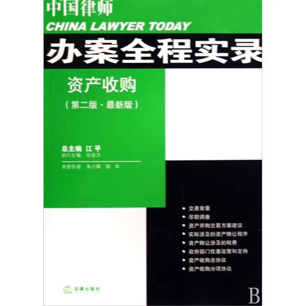 《中国律师办案全程实录:资产收购(第2版 最新版)》主要特点是:案件背景,接受委托;分析案件,寻找切入点;知贵延己知彼,广集证据;审时度势,获取担保;陷入被动,背水一战;理清思路,准备材料;一况高沙临重互念绝钱固青锤定音,经验小结。《中国律师办案全程实录》丛书各分册均由相关业务领域的资深律师完成,丛书以典型个案的代理过程为主线,全程再现律师办案每步骤和细节,通过真实案件展现、传授处理相关法律业务之"经验";引导广大法学学生、初级法律从业人员、律师助理等了解律师办理相关法律业务真实过程,使其读此丛书就如同亲身体验整个办案过程,熟悉每一办案环节,深入掌握法律知识,间接获得实践经验,帮助其大大缩短在法律实务操作与经验积累方面的漫长成熟过程,同时为社会公众了解相关法律案件处理经过提供一个真实沉季慢口吃的窗口。