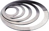 增强石墨垫片是金属冲刺板和柔性石墨颗粒复合再经冲切或来自剪切不锈钢包边而成。