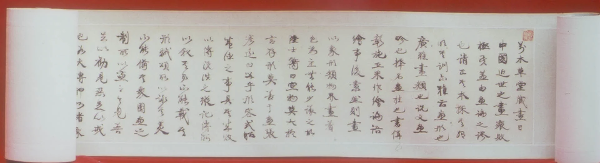 《行书万木草堂画目卷》是康有为先生于1917年在美国公使馆的美森院中所写的关于中国古代书画的长篇论著,共约1.5万字,现藏于南海区博物馆。