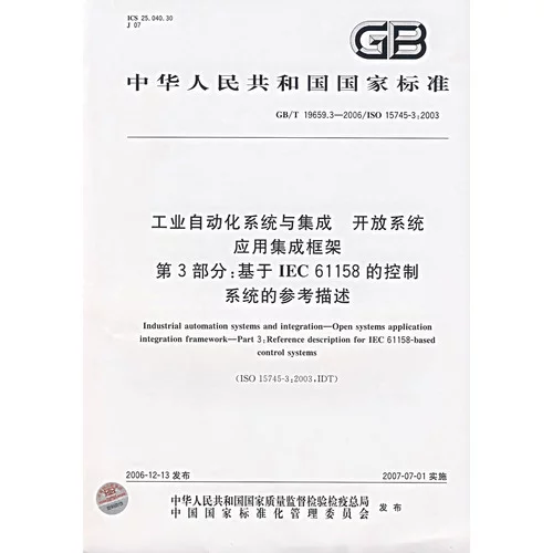 - 书名 工业自动化系统与集成开放系统应用集成框架第3部分:基于IEC61158的控制系统的参考描述