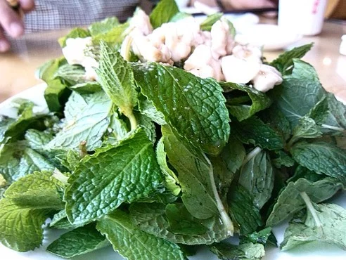 ■十香菜与核桃仁凉拌,有健脾、健脑、消食的功效。凉拌吃法是直接来自用香油、蒜汁拌之,其初入唇时口感微苦,但咀嚼不久后,即感觉有甘香在口腔中蔓延,回味弥久。