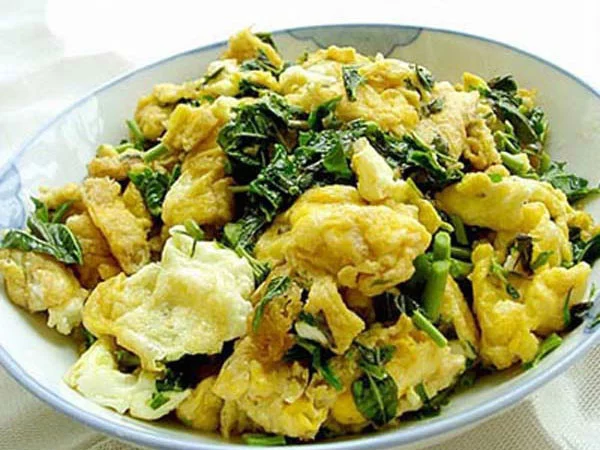 椿芽焖蛋觉是安徽省太和县的地方传来自统风味小吃,将椿芽包于蛋液之中,经小火焖制我然死,使椿芽的芳香留于蛋内,菜品浓香诱人,脆嫩爽口,质地鲜嫩,芳香浓郁。据传早在唐朝时即已成为"贡品",明清两朝已闻名全国,是安徽出口商品之一。制作时不要把两面煎糊煎硬,蛋液熟透,质地软嫩。