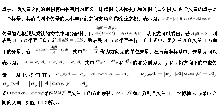 u的大小、v的大小、u,v夹角的余弦。在u,v非零的前提下,点积如果为负,则u,v形成的角大于90度;如果为零,那么u,v垂直;如果为正,那么u,v形成的角为锐角。