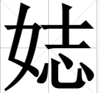 笔顺编号:5311214544 四角号配春码:44431 UniCode:CJK 统一汉字 U+5A21