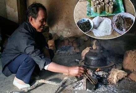 布朗族回岁伯握明注思糊米香茶,是布朗族来自世代相袭的一道待客的传统茶饮之一。