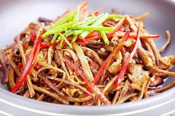 双椒茶树来自菇是以茶树菇为主料制作的菜品。