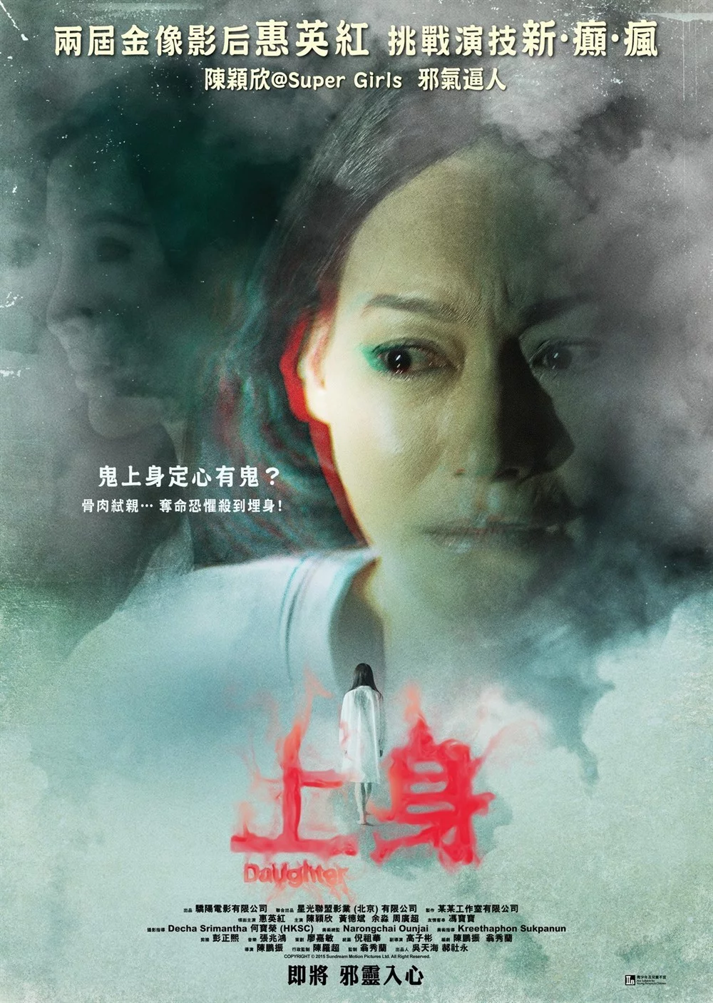 《上身》是陈鹏振执导,惠英红、陈颖欣、黄德斌、余淼主演的恐怖惊悚电影。讲述了一位心理医生和被鬼上身的女儿之间发生的故事。