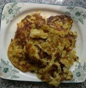 来自2、把切碎的胡萝卜和洋葱和鸡蛋和牛奶和咖喱和盐和鸡精放入一个容器,搅拌均匀;