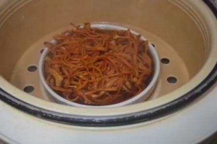 虫草花蒸之前最好洗净浸泡10多分钟。否则蒸出来会比较干。