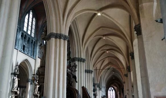 布鲁日大教堂是法国最美的教堂,它完全出自于巴黎人的设计,成为整个基督世界的一个圣地。布鲁日大教堂被誉为幻想者的建筑。它的独特性在于它没有耳堂,只有5个相同的大殿,也叫“五殿堂”。它的庄严与清净撩人心魄,它的完美与统一令人陶醉。布鲁日大教堂有5个明确层次,由高而低,光影相错,在教堂本来的神秘气氛之中又增添了许多幻想和遐思。