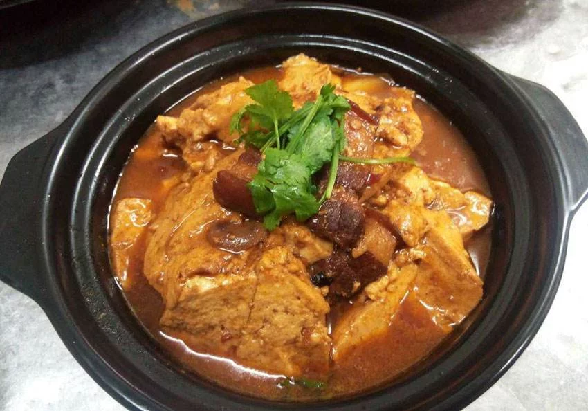 内容扬认督硫件丰富的砂锅豆腐鸡