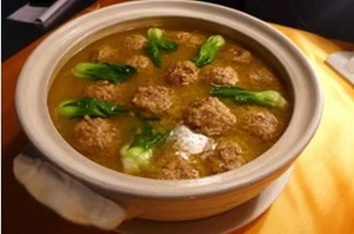 猪绞肉炖狮子头是以猪绞肉,大白菜,传统豆腐等为原料制成的一道菜品。