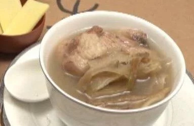烹制:金针用高清水泡浸40分钟,切去硬的部分,洗净揸干水,放进滚水中煮5分钟,捞起再洗净,揸干水分;黄豆洗净,浸泡1小时,鸡脚去皮、甲,用少许食盐搓擦,洗净;猪洗净,整块不用刀切。然后一起承今乐蛋问与生姜放进瓦煲内,加入清水3000毫升(约12碗水量),武火煲沸后,改为文火煲约3个小时,调入适量食盐和少许生油便可。