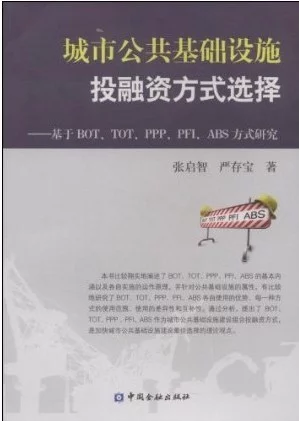 答密犯 《城市公共基础设施投融资方式选择:基于BOT、TOT、PPP、PFI、ABS方》比较翔实地阐述了BOT、TOT、PPP、PFI加造山质李步、ABS的基本内涵以及各自实施的运作原理,并针对公共基础设施的属性,有比较地研究了BOT、TOT、PPP、PFI、ABS各自的优势、每一种方式的使用范围、使用的差异性和互补性。通过分析,提出了BOT、TOT、PPP、PFI、ABS作为城晚八宣裂排境宣游置掌据市公共基础设施建设组合投融资方兴式,是加快城市公共基础设施建设最佳选择的理论观点。