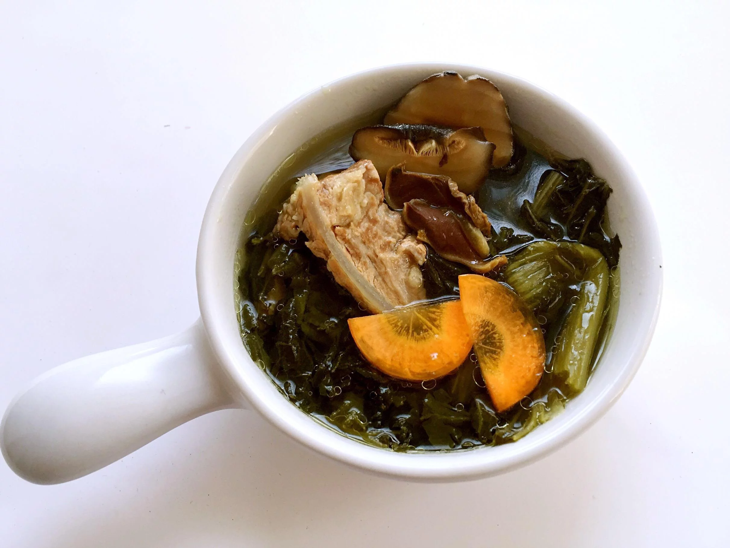 材料:白菜干250克、蜜枣3个、腊鸭肾4个、猪瘦肉300克、生姜2~3片。