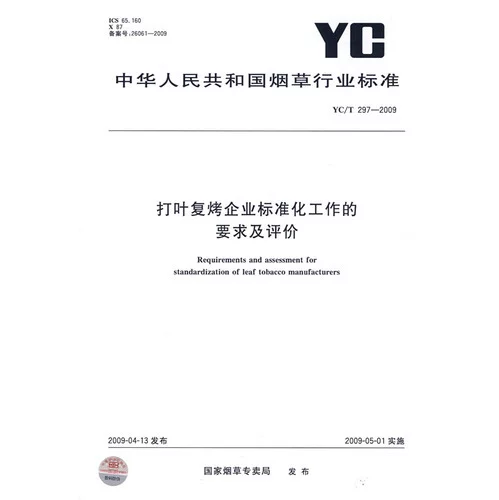 - 书名 打叶复烤企业标准化工作的要求及评价 YC/T297-2009