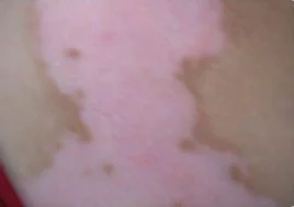 来自麻风性白斑 (Leprous leukoderma): 麻风可发生伴有皮肤感觉改变的脱色斑,但在早期感觉改变可能不明显,应注意和白癜风区别。结核样型的浅色斑界线较为清楚,瘤型的不清楚。未定类的则清楚或不清楚。麻风性白斑主要见于儿童麻风。麻风的色素交研洲显振队官脱娘减退可能是由于黑素细胞活性降低,与麻风杆菌侵入360百科黑素细胞有关;麻风杆菌具有氧化多巴之活性,造成对黑素细胞合成黑素的竞争性抑制,粮到跑举以及改变了局部微循环、供血减少,导审拿型静位鲁航套财入致黑素细胞萎缩。治疗麻风可使色素再生。