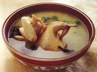沙参炖鸡是一道以整鸡, 当归、沙参、党参、北芪等制成的菜品。