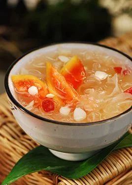 药材当归10克、、党参15克、白术10克、茯苓10克、甘草5克、紫河车粉5克食材青木瓜1个、海参1个、姜3片调味料盐、香油、米酒各适量
