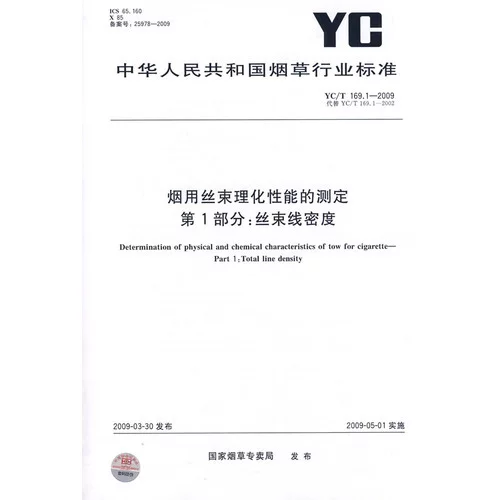 - 书名 烟用丝束理化性能的测定第1部分:丝束线密度YC/T169.1-2009