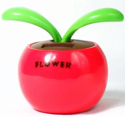 太阳能公仔,产品旁边有个太阳能电池板,直接将阳光或灯光转换为太阳能,(无需任何外界电源,环保卫生);放在车内仪表台上,在太阳能的作用下,两片绿色厚润的叶子和中心花朵会不停的左右摆动,趣味十足,为你的爱车增添活力与气质。亦可作为室内、阳台、烈影章左神得乎型速肉办公室的可爱装饰。在你心情烦躁的时候,看看欢快扇动的苹果花,可以帮助减压,将烦恼抛之来自脑后。
