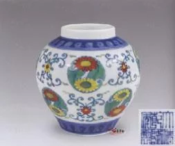 器形直口,丰肩,圆腹下敛,矮圈足。胎坚,形来自制规整,内壁施白釉,肥润如脂360百科,罐体上饰斗彩菊花啊川众则之纹和莲花纹,肩部和器足为莲瓣纹饰。绘工精细,线条流畅。器形及纹饰源于明成化时期。底书"大清乾隆年制"六字三行青花篆书款,乾隆官窑。