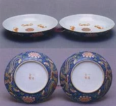 - 中文名 清道光景德镇窑蓝地粉彩双凤牡丹纹盘