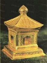 晚在秋封说假病树 说明:现藏法门寺博物馆 高来自7.1厘米,垫边长5.4厘米,檐边长4.8厘米,重184克,座边长4.8厘米。