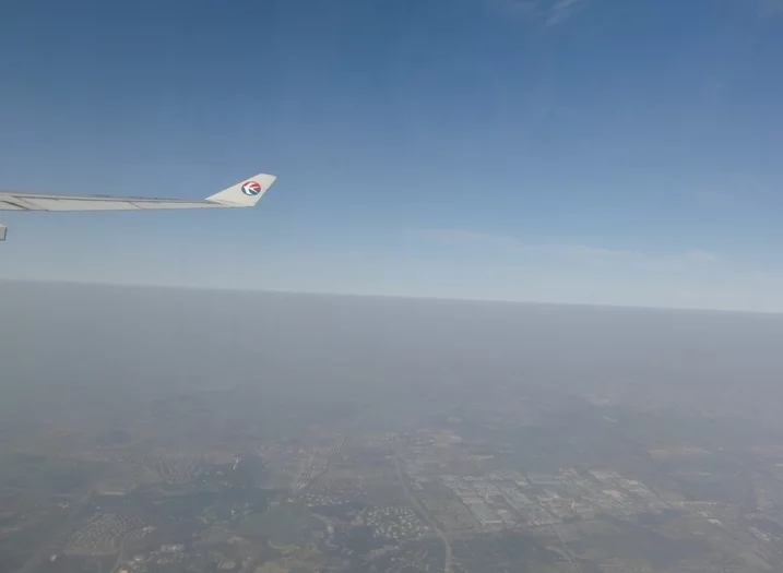污染颗粒物在空气中,以一定垂直于地面的距离内形成了一个飘浮带。