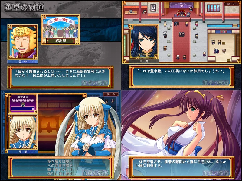 董卓的霸表现道是基于日本世嘉公司出品的街机卡片游戏《三国志大战》系列产生的成人向同人游戏。
