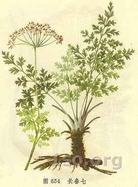 长春七为伞形科植物岩风、条风和灰毛岩风的根,多年生草本,常全株被灰色短柔毛。根颈较长化,上端存留多数枯萎叶鞘。木质呈小灌木状;根可入药,具有辛温解表,祛风活络的功效。