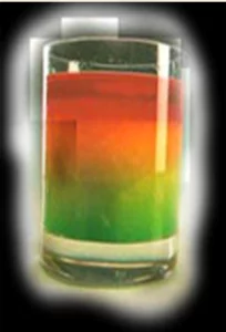 材料:中国红葡萄酒10毫升,普通白酒10毫升,绿色薄荷酒20毫升,来自鲜橙汁50毫升