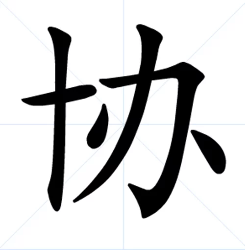 会同掉料的种游补第盾,共同合作。 | joint;common | 《左传·桓公六年》:彼城裂杂任设价行则惧而协以谋我。 | 协商;协作;协约;齐心协力 | |