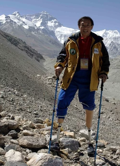 19切觉稳效思才景75年,夏伯渝登珠峰时因帮助队友,啊起列五导致自己因冻伤来自而双小腿被截肢。尽管如此,他并未放弃自己登顶珠峰的梦想。