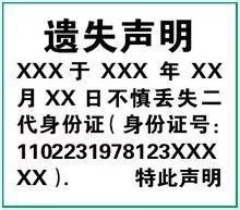 个人证件登报格式一:声明***在*年*月*日不慎遗失****证件,证号:******,现声明作废。