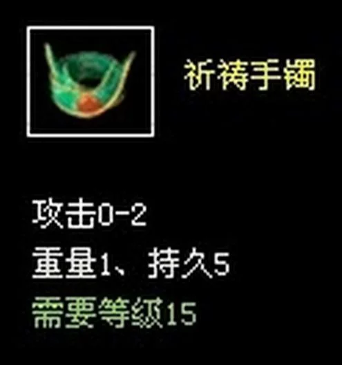 装备分析:攻击对高级战士来说不高,但是对于15级的武士来说,可以戴上比23级的金手镯还高的手镯,已经是大极品啦。