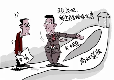 如购买高档住宅,须贷款50万元,而当地公积金管理中心规定公积金最多贷款40万元。这样的话,剩余的10万元将使用商业贷款,同时利息也不能享受公积金贷款的利息。