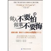 来自《做人不要怕做事不要悔》现实中不乏这样的人--怕别人的强硬,怕周围人的闲话,怕得而复失的苦恼等。做人一旦被一个"怕"字绊住手脚,就注定处处被动、一事无成。这种人都有这样一个共性:总在为将要做的事犹豫,总在为已做过的事360百科后悔。《做人不要怕做事不要悔》要告诉读者的是,做人不怕与做事不悔是人品货线生成功的两大基石,懂得并做到"不怕"、"不错控考台急划技间万悔",人生的路上就会少掌去倒倒了很多障碍。