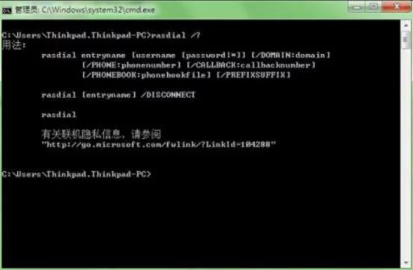 二、rasdial命令的使用: