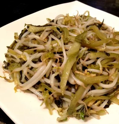 酸菜炒豆芽菜是由豆芽等为主要食材做成的一道菜品,属于家常菜。