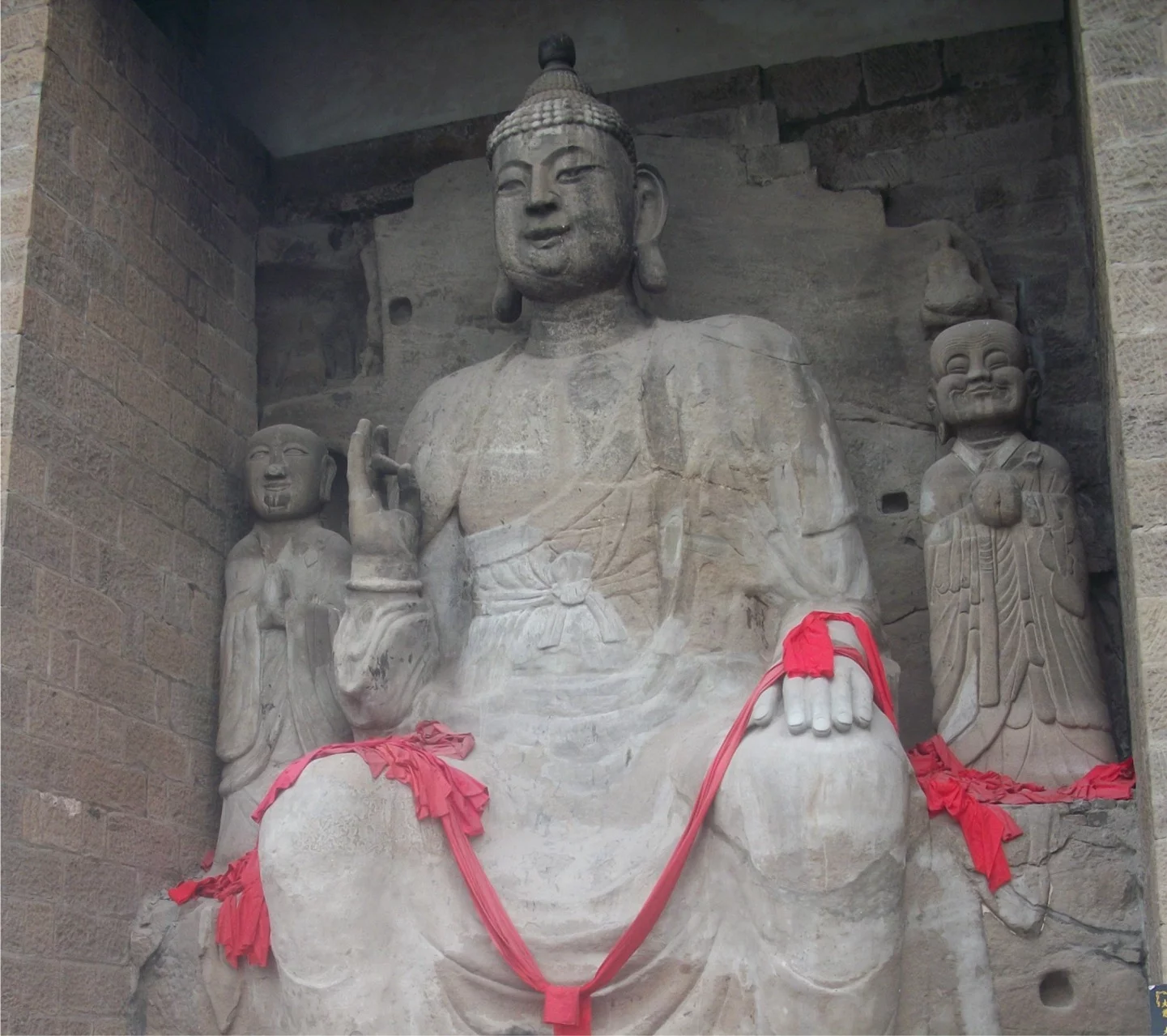 重庆大佛寺,现仅存五佛殿和大佛龛。五佛殿重檐歇山式殿堂重建于1844年(清道光二十四年),但殿中供奉的五座佛教圣像,却是1421年(明永乐十九年)始建,距今近六百年。