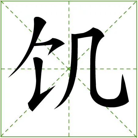 饥:jī ㄐㄧˉ。"饥"、"饥"简化为"饥"。依据古人书法省笔简化 酒心一息沙钟。《说文解字》:"饥,饿也。从食、几声。 "。倚几待食是饥之范式。(《说文解字注》:"饥,谷不孰为饥。从食几声。 "。谷不熟而守之未食是饥之范式)