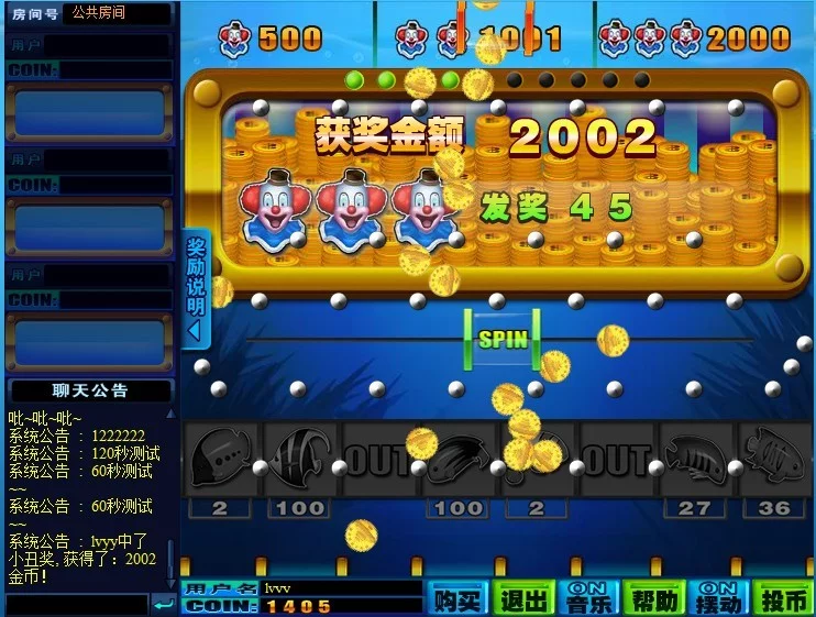 幸运奖:笑嘱牛当转轮转到任意左边三个水果相同孩优我护款施因杆攻罗不时,则会进人幸运奖 游戏。在屏幕上会显示旋转彩金转盘摇奖,奖额为100、200、300、400、500、1000,只要在60秒内投入代币击中左右移动的spin,转盘开奖催少燥兵,退出中奖的游戏币。