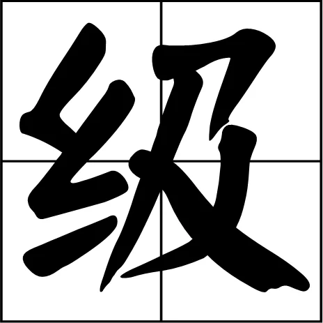 级,形声字。始见于战国文字。甲骨文的"级",字形左边是个"人"形,下面还有个"手"形,这是古时的"及"字,表示用手抓住这个人,右边是"阜"字,就像山上的石阶。小篆中的"级",左边变成了"糸(mi)"字。篆文都从糸、及声。从"糸",指丝的材质;"及"表示音读。隶书、楷书都从篆文来。在六书中属于形声。 "及"之形体演变,参"及"字条。"级"乃"级(繁体字)"之简化字。