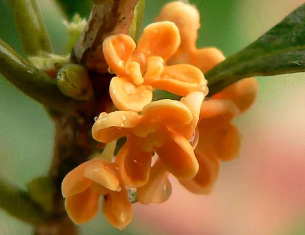 花冠近平展,花冠裂片卵圆形;花色橙黄,国际色卡编号为25A(橙色);香味淡,不结实。花期9月下旬至10月上旬。